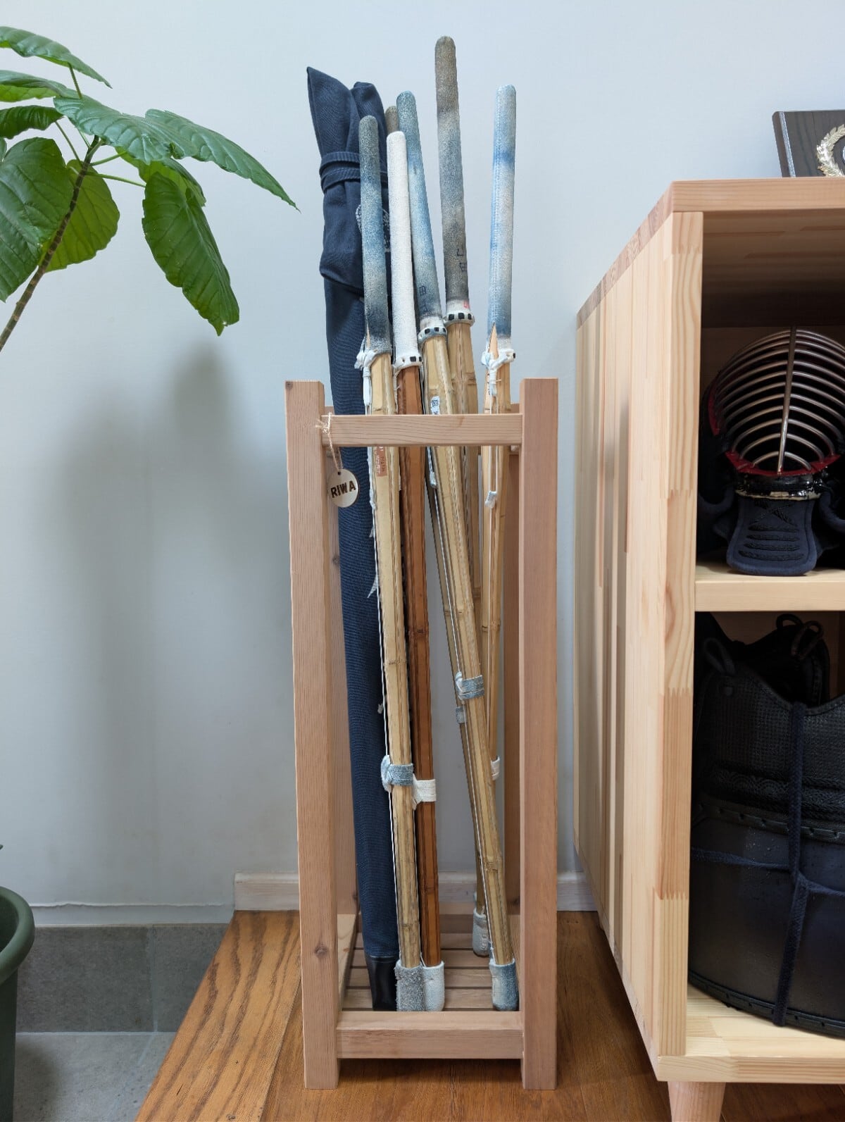 通気性も良く、丈夫な作り。さらに、竹刀の保管がスムーズに行えるように配慮されたデザイン。置くだけで道具の整理整頓が完了します!